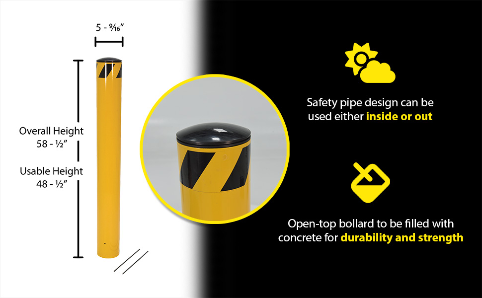 | Steel Pour In Place Bollard 48 In. x 6-1/2 In. Yellow | Usable Height (in.): 48-1/2 Outside Diameter (in.): 6-5/8 | 49 |