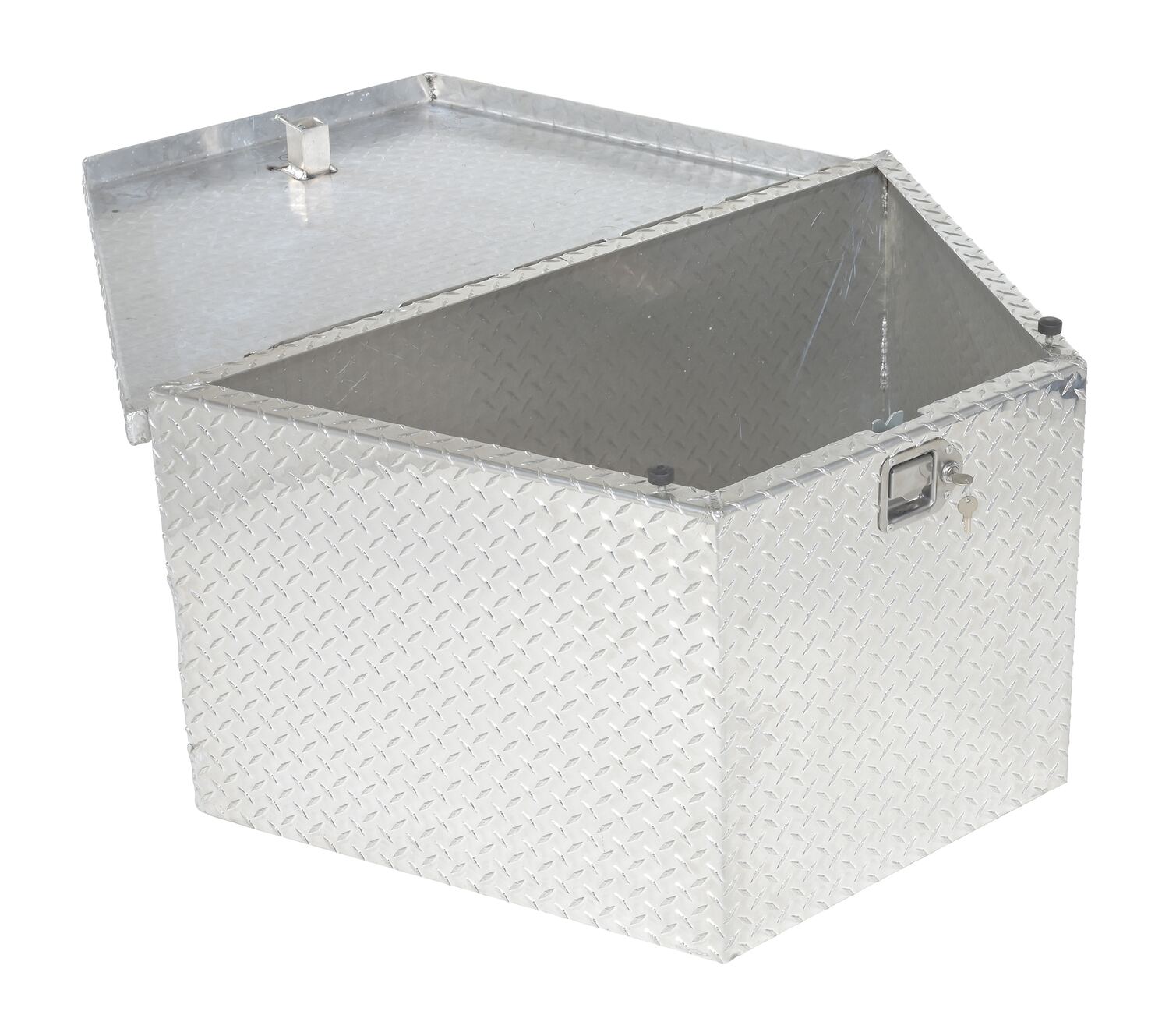 This toolbox is specifically designed to be used on the tongue of fifth wheel trailers. So often this space is never utilized fully or all together wasted. With this specifically in mind, this toolbox is built to fit directly into that empty fifth wheel space. A narrow front end with a wide back allows the user to secure a large variety of items and protect them from the outside elements.
