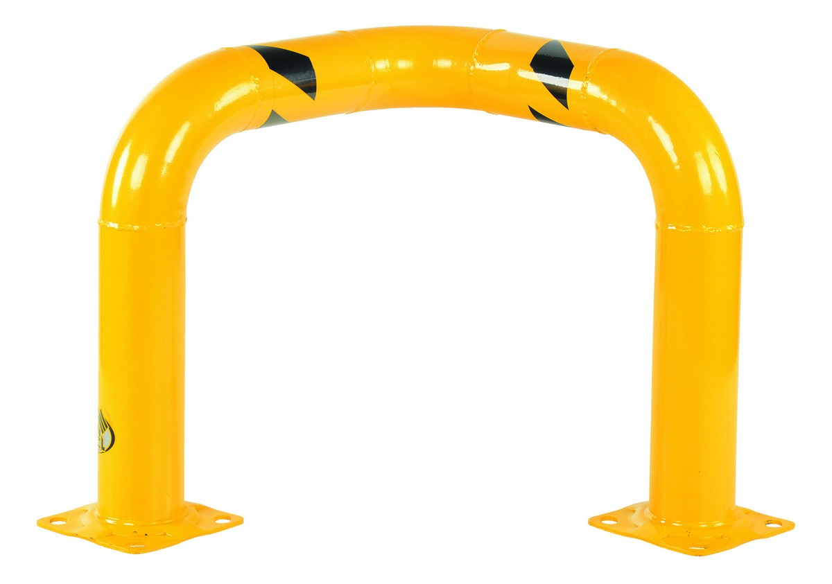 When protecting racks, building walls or other expensive equipment, look no further than the triple elbow guard. Its heavy-duty welded steel construction provides the support needed to minimize outside risks. Unit includes three base plates for simple attachment to a variety of surfaces.. A powder coat finish not only promotes high visibility, but it also adds a level of surface wear toughness.