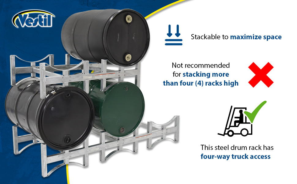 DRUM-RACK-2-G DRUM-RACK-2-GGalvanized Steel Stackable Drum Rack 2 Drum 55 Gallon 1600 Lb. Capacity GrayUniform Capacity (lb.): 1,600
