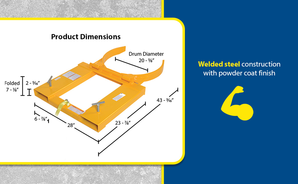 DGD-55-D DGD-55-DSteel Deluxe Double Drum Gripper 55 Gallon 43-5/8 In. x 46-1/4 In. x 9-3/8 In. 2000 Lb. Capacity YellowUniform Capacity (lb.): 2,000