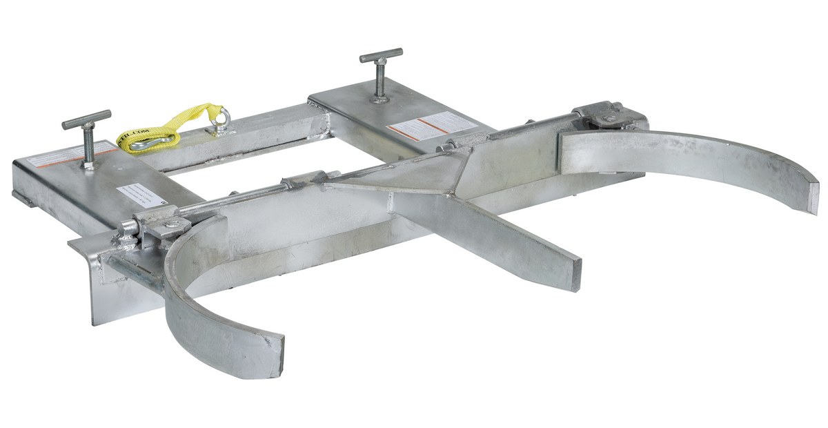 The Drum Gripper makes it easy to pick up one or two open head (with lid installed and secured) and closed head steel drums without leaving the seat of the fork truck. Simply slip the forks into the fork tubes, fasten the safety restraint and the Drum Gripper is ready to go. The knuckle gripping system is lowered around the drum, gripped tightly, and then lifted into the air. Drum is automatically released by lowering the forks. All models feature hinged folding design for storage. Safety restraint included. Welded steel construction with a baked-in powder-coated toughness.