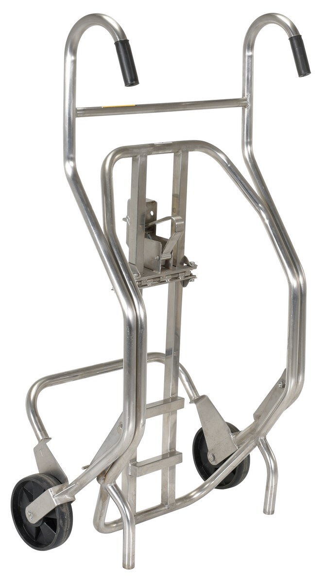 model DBT-SS-DLX, Easily, efficiently, and safely lift, move, and maneuver a wide range of steel and plastic drums. Automatic grip can be adjusted manually up and down to suit different heights. Robust design - 304 all stainless steel construction. 50% less input force is required to lift a 1,000 lb drum compared to standard drum trucks. To operate, simply push the truck to drum and attach the automatic grip to the drum rim. Rolls simply and smoothly on two (2) 8" x 2" nylon wheels.