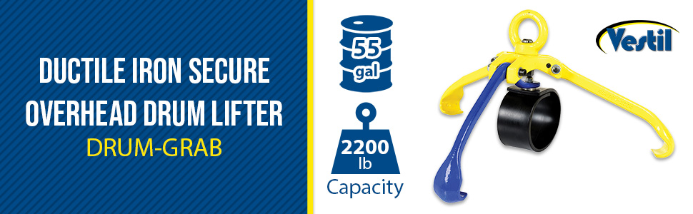 DRUM-GRAB DRUM-GRABDuctile Iron Secure Overhead Drum Lifter 21 In. x 22-1/2 In. x 12 In. 2200 Lb. Capacity Blue / YellowLifting Capacity Closed Head Drum (lb.): 2200