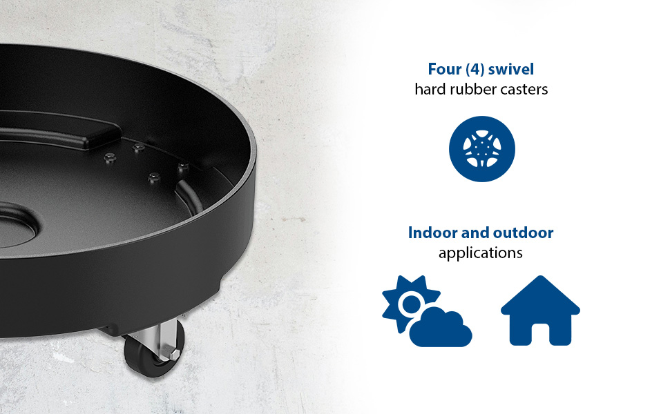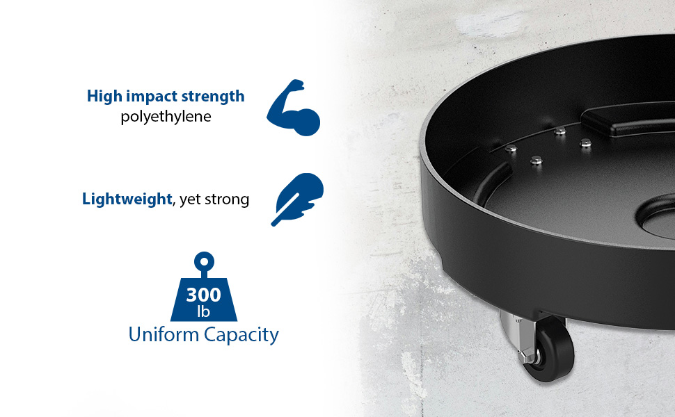 DRUM-DP-HD-55-BK DRUM-DP-HD-55-BKPolyethylene Heavy Duty Drum Dolly 55 Gallon 24-1/4 in. x 24-1/4 In. x 8-1/2 In. 600 Lb. Capacity BlackUniform Capacity (lb.): 600