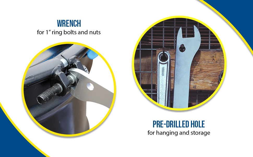 • Drum tool has integral wrench for removal of ring bolt and nut
