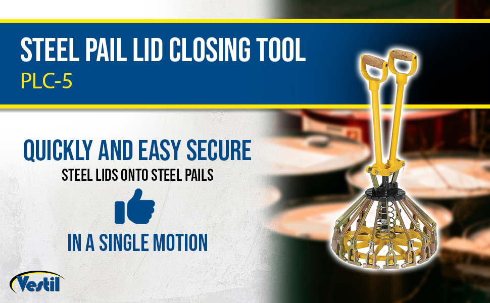Quickly and easily secure steel pail lids onto steel pails with the Steel Pail Lid Closing Tool. Manually crimps and closes 16 lugs in a single motion. Long handles provide leverage reducing the effort necessary to secure lids to pails. Intended for use with non-UN Vestil Steel Lids and Steel Pails.