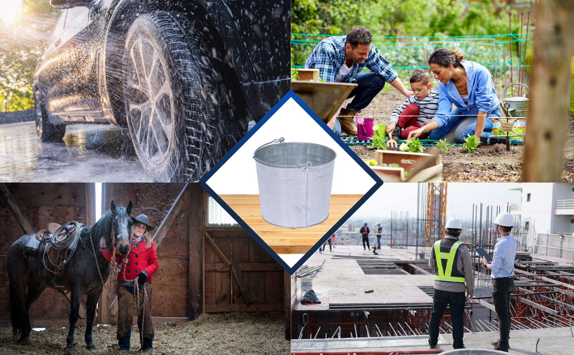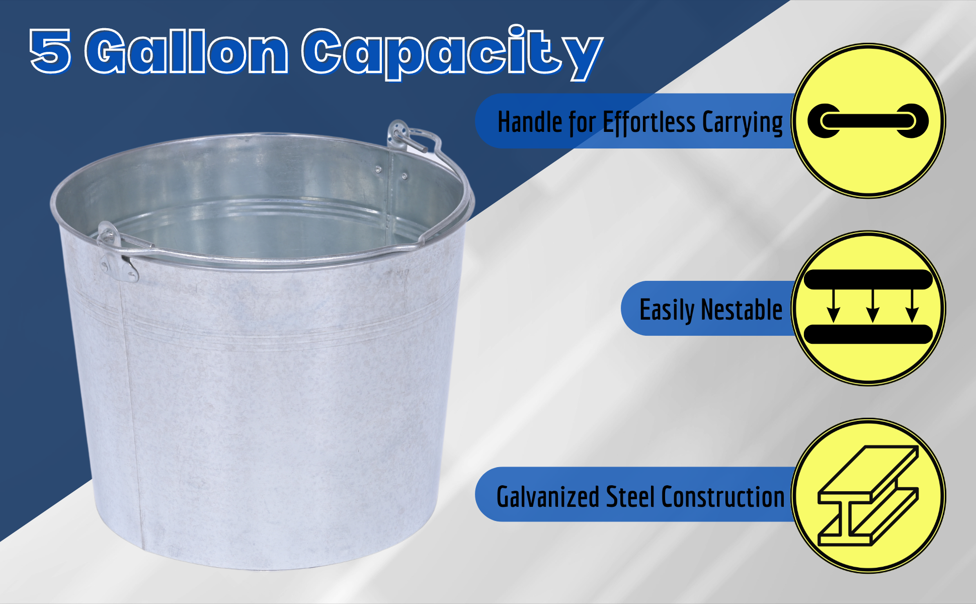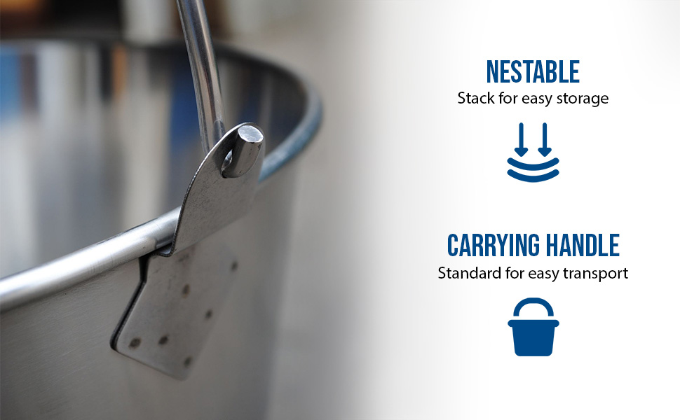 Galvanized and stainless steel buckets are for use in industrial and commercial applications where durability is required. Buckets are nestable and come standard with a carrying handle/bail for easy transport.
