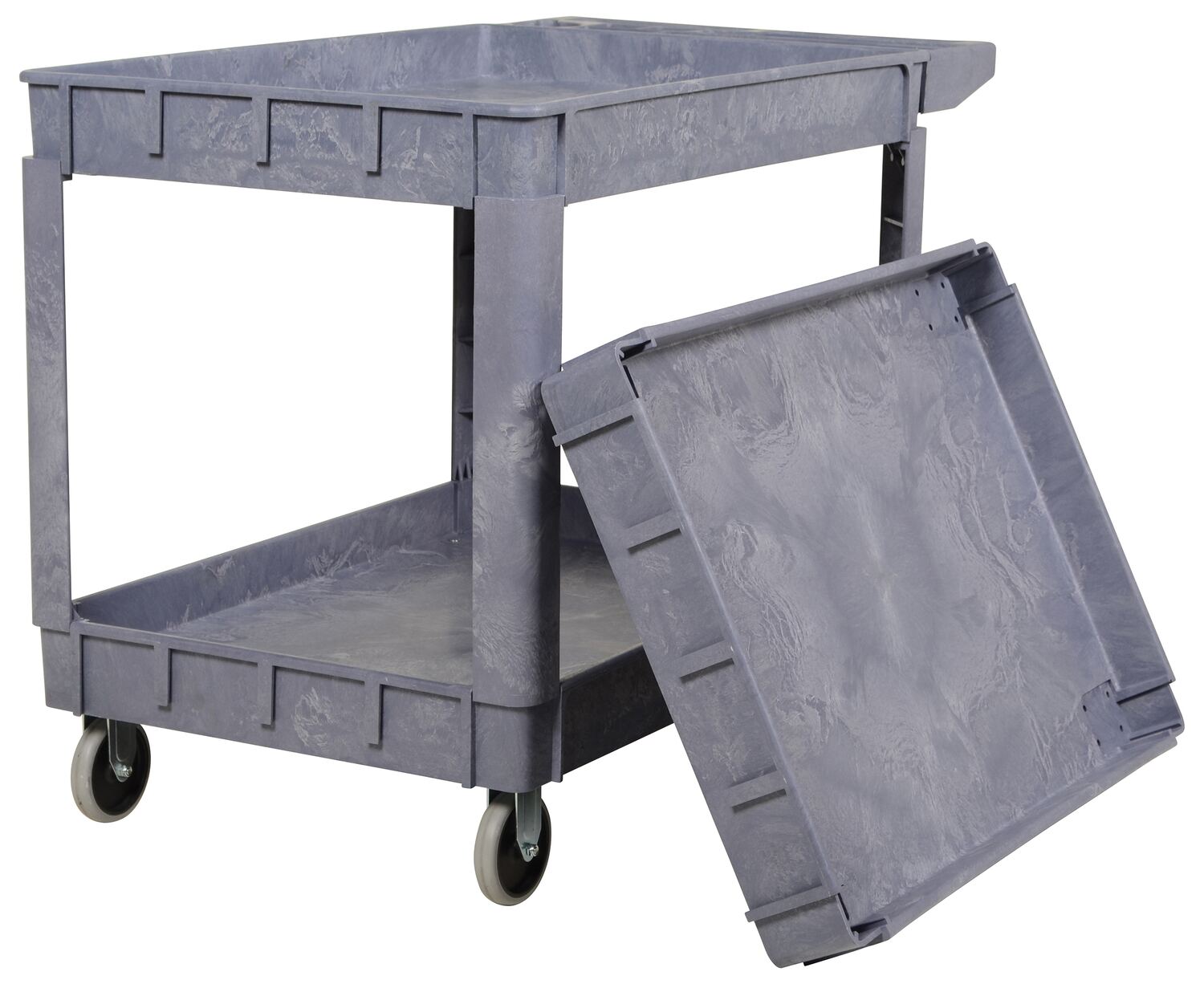 PLSC-2-2436 PLSC-2-2436Plastic Utility Service Cart 2 Shelves 45 In. x 25-1/2 In. x 33-1/2 In. 550 Lb. Capacity GrayUniform Static Capacity (lb.): 550