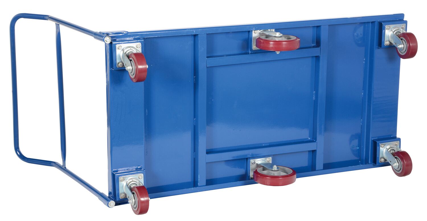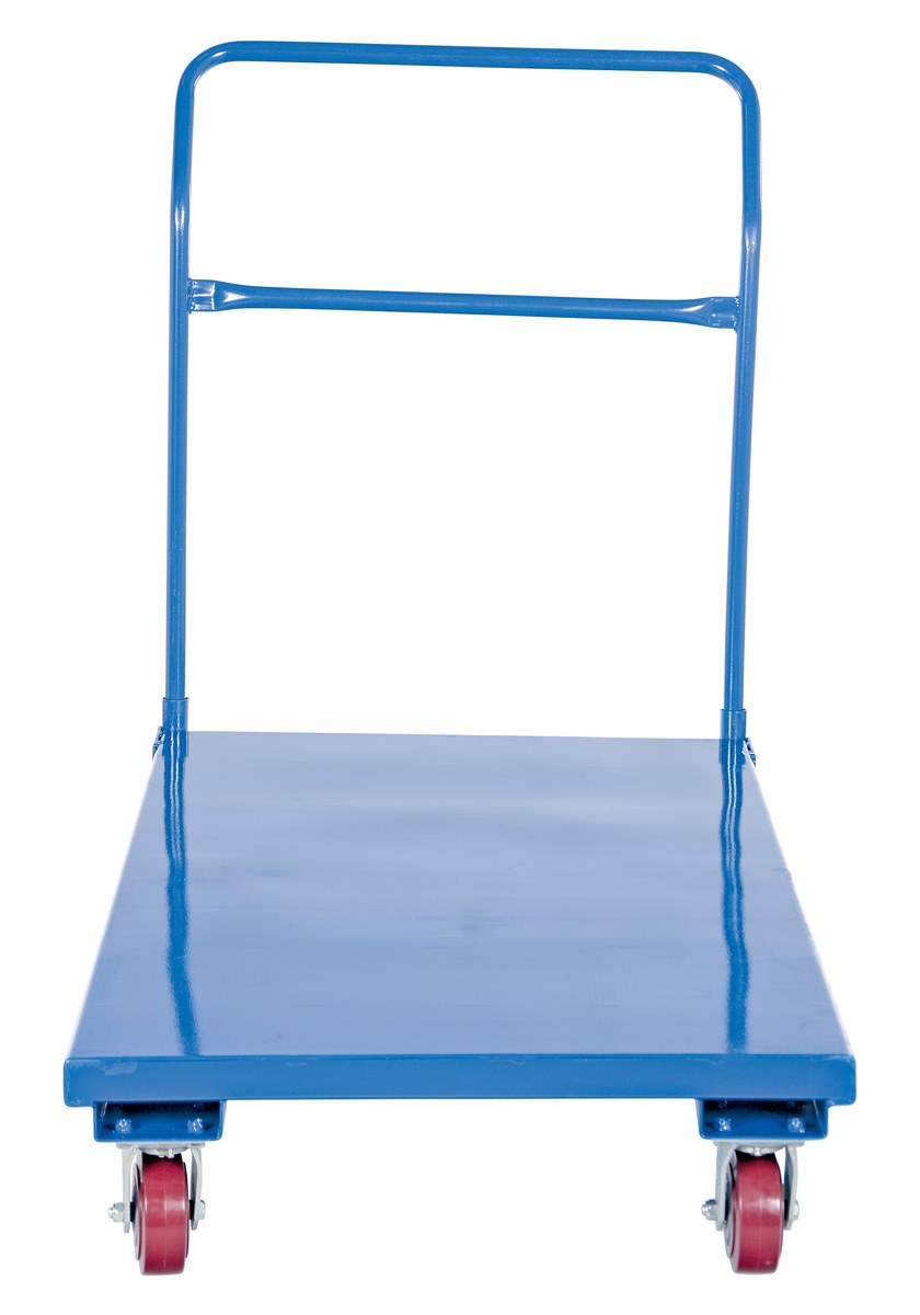 Heavy duty steel platform cart provides long term service. Removable handle. Rolls on (4) 5" swivel and (2) 8" poly rigid casters. Center caster provides great maneuverability. Ideal for industrial, commercial and warehouse use.