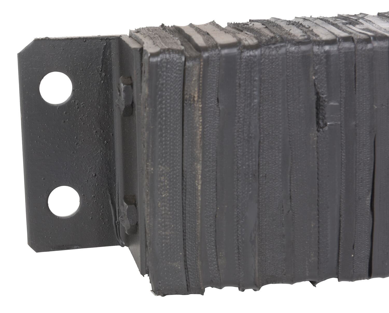 The laminated Dock Bumper provides durable, economical protection for loading docks and trailers. This unit is constructed of fabric reinforced rubber from recycled truck tires. The pads are laminated between painted structural angles and held together with steel tie rods. The width is bolt hole center to bolt hole center. Installation hardware sold separately.