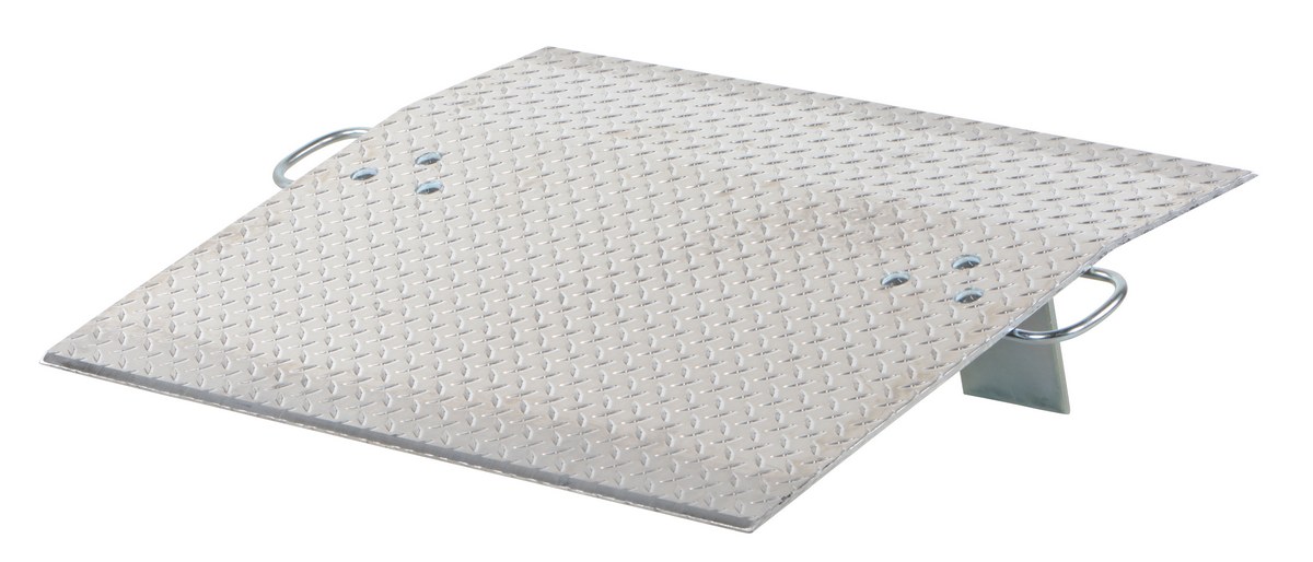 Aluminum Hand Truck Dock Plate 36 In. x 30 In. 700 Lb. Capacity SilverThis Aluminum Hand Truck dock plate is designed for use with two (2) wheel hand trucks. It is a convenient, safe, and easy way to access loading docks from trucks. This dock plate is lightweight and easily transported by just one person. The tread plate surface ensures skid-resistant safe traction and the locking legs secure the plate for safe loading and unloading. Complete with bolt-on zinc plated carrying handles and locking legs.this Aluminum Hand Truck dock plate is designed for use with two (2) wheel hand trucks. It is a convenient, safe, and easy way to access loading docks from trucks. This dock plate is lightweight and easily transported by just one person. The tread plate surface ensures skid-resistant safe traction and the locking legs secure the plate for safe loading and unloading. Complete with bolt-on zinc plated carrying handles and locking legs.