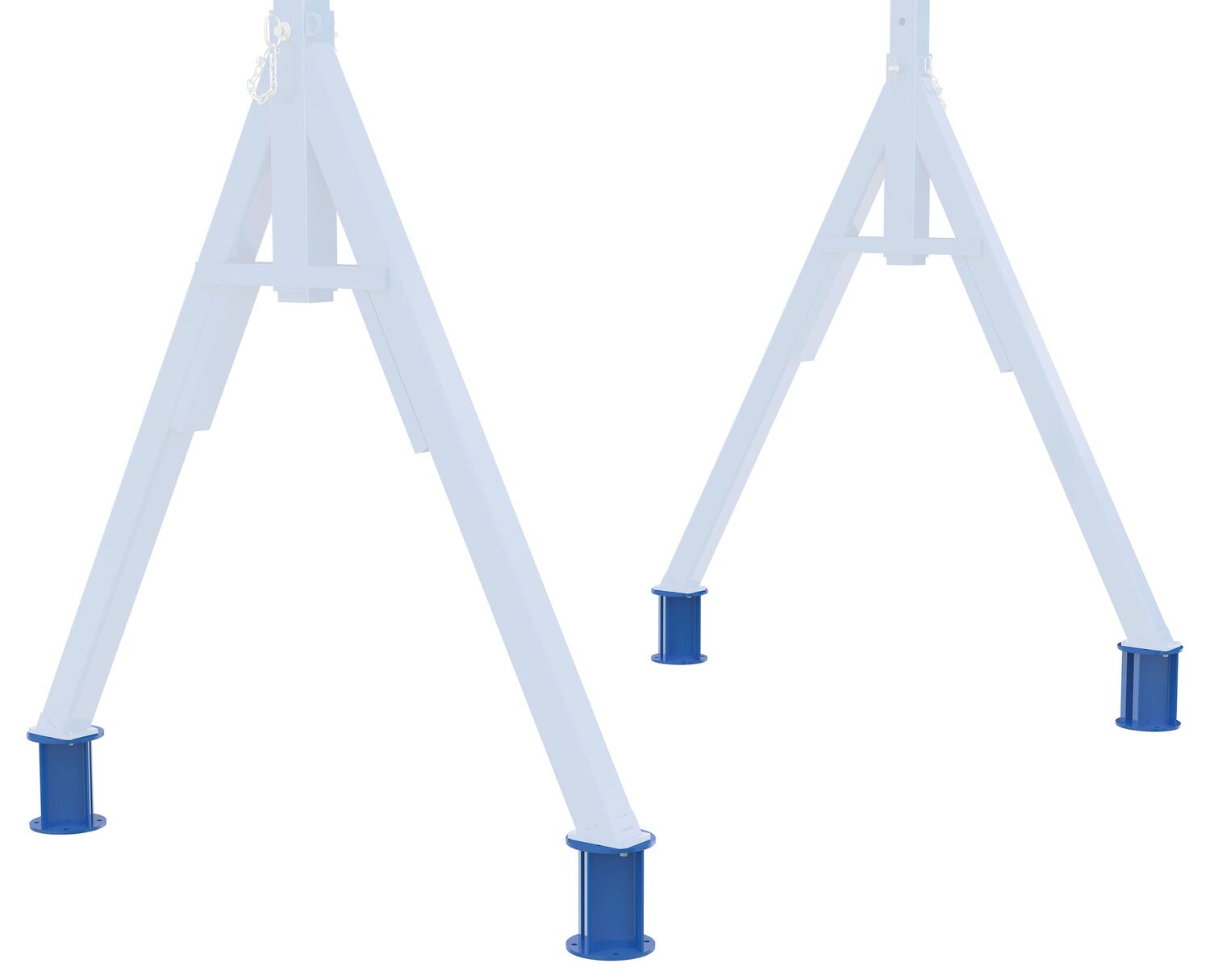 Factory Installed Steel Stationary Legs Kit Quantity 4 For Steel Gantry Cranes 2,000 Lb. - 8,000 Lb. Capacity (Not to Exceed Crane's Capacity) BlueStationary leg sets are a great accessory to a gantry crane. By assigning the crane in a specific area the legs set create a solid base to a workplace. The set continues to have all the strength and durability of its portable counterpart, except the ability to roll. Factory installed.
