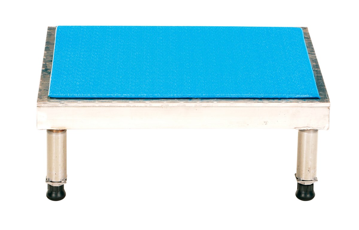 Aluminum Adjustable Work-Mate Stand 24 In. x 19 In. x 9-1/2 In. 500 Lb. Capacity SilverThe adjustable work-mate stand minimizes fatigue by elevating workers to heights that are comfortable and ergonomically correct. Especially useful when multiple shift employees operate the same piece of machinery. The ergonomic matting deck style provides comfort for the operator who stands all day. The height of each leg can be adjusted individually to ensure proper working height.