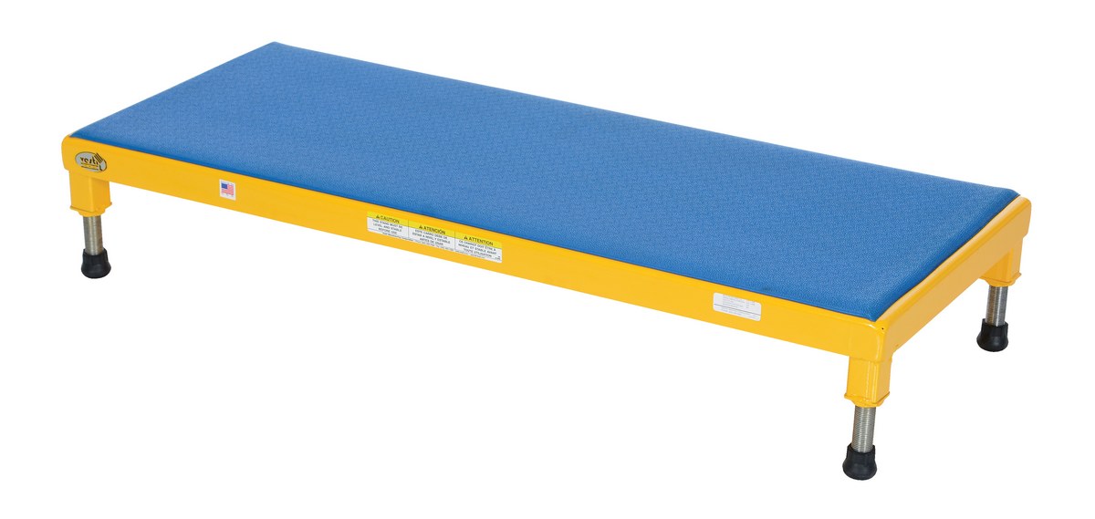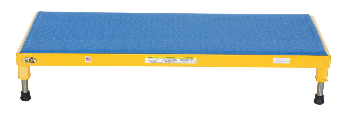 The adjustable work-mate stand minimizes fatigue by elevating workers to heights that are comfortable and ergonomically correct. Especially useful when multiple shift employees operate the same piece of machinery. The ergonomic matting deck style provides comfort for the operator who stands all day. The height of each leg can be adjusted individually to ensure proper working height.