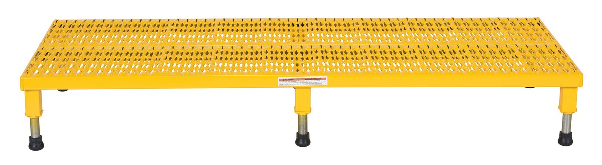 Steel Adjustable Work-Mate Stand 60 In. x 23-1/2 In. x 6-3/4 In. 500 Lb. Capacity YellowThe adjustable work-mate stand minimizes fatigue by elevating workers to heights that are comfortable and ergonomically correct. Especially useful when multiple shift employees operate the same piece of machinery. The height of each leg can be adjusted individually to ensure proper working height.