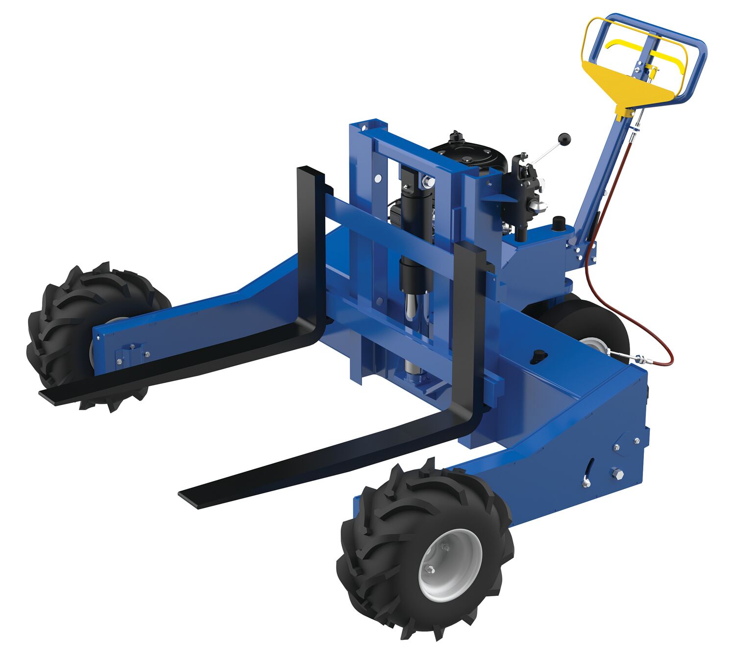 Steel Heavy Duty 344CC Gas Powered Drive and Lift All-Terrain Pallet Truck 36 In. Long Adjustable Width Forks 4,000 Lb. Capacity BlueAn all-terrain pallet truck with a gas powered drive system is the perfect solution when moving items over uneven surfaces. This pallet truck is great for use at construction sites and landscaping areas. With the adjustable forks, the products can be positioned to better fit the users needs. The robust steel construction and outriggers enable the transference of items, both large and small. Steering handle includes multiple controls and throttle hand lever for user safety.