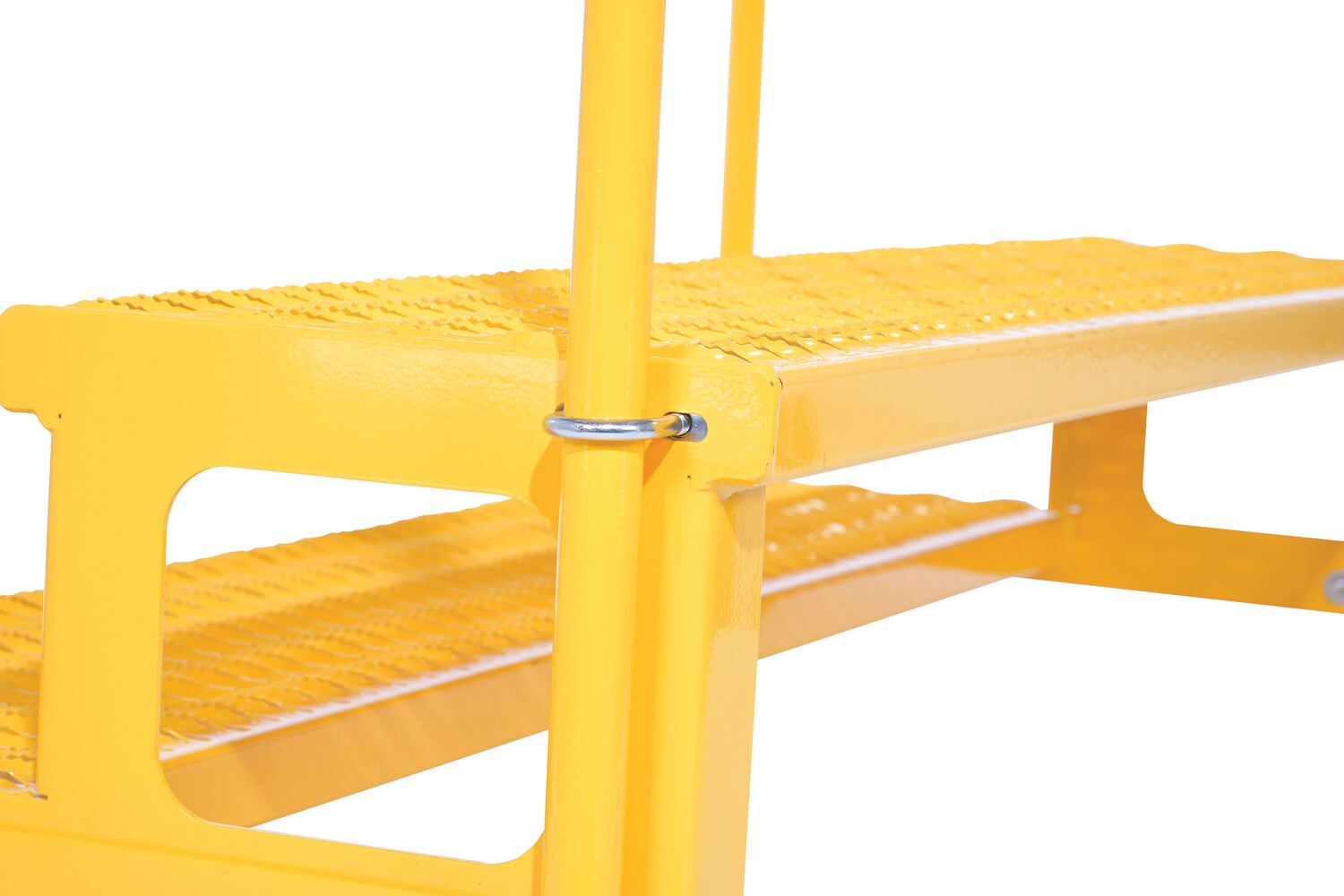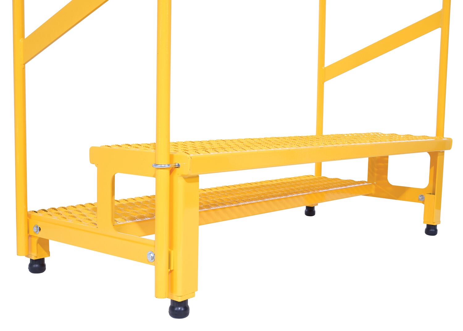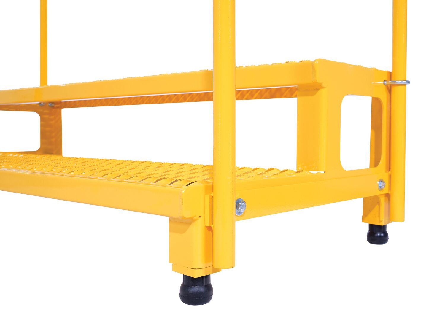 Steel Adjustable Step Mate Stand 2 Step with Handrails 22-7/8 In. x 50-1/2 In. x 43-1/8 In. 500 Lb. Capacity YellowThe adjustable step-mate stand can be used as either a comfortable worker platform or a semi-permanent step. The serrated surface ensures safe footing. The legs adjust individually by screwing them into or out of the leg base.