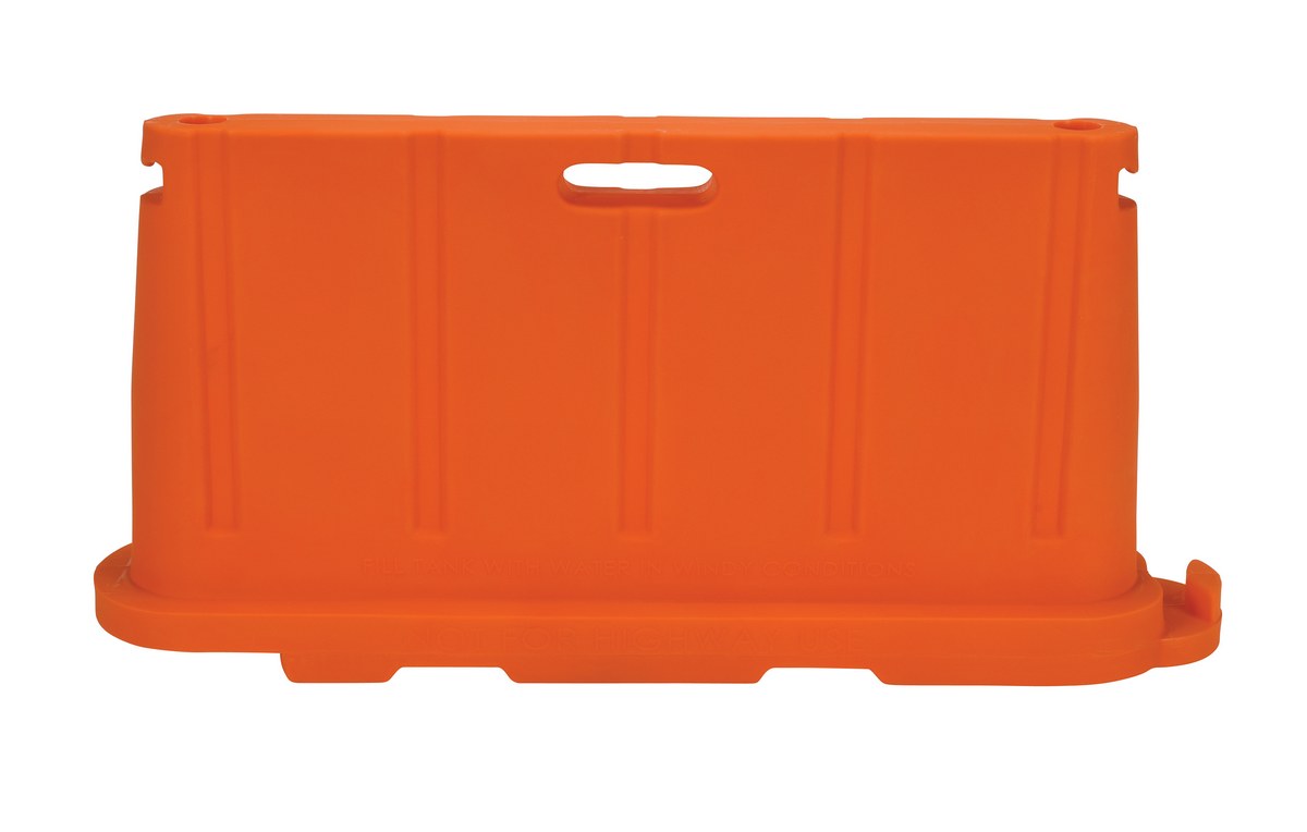 The portable barrier is ideal for traffic and crowd control. The unit can be filled with water or sand for added security. The barriers have additional forklift slots on the bottom of the unit for easy transportation and can be stacked during storage for extra space. Special colors and custom mold in graphic labeling is available upon request.