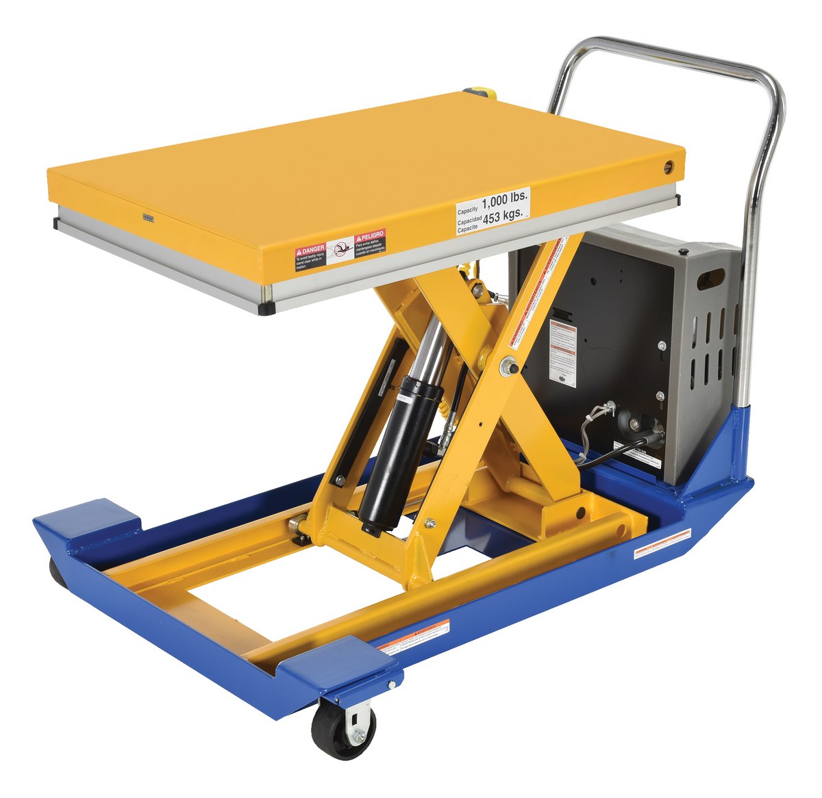 Steel DC Powered Scissor Cart 36 In. x 24 In. 1000 Lb. Capacity Blue / Yellow