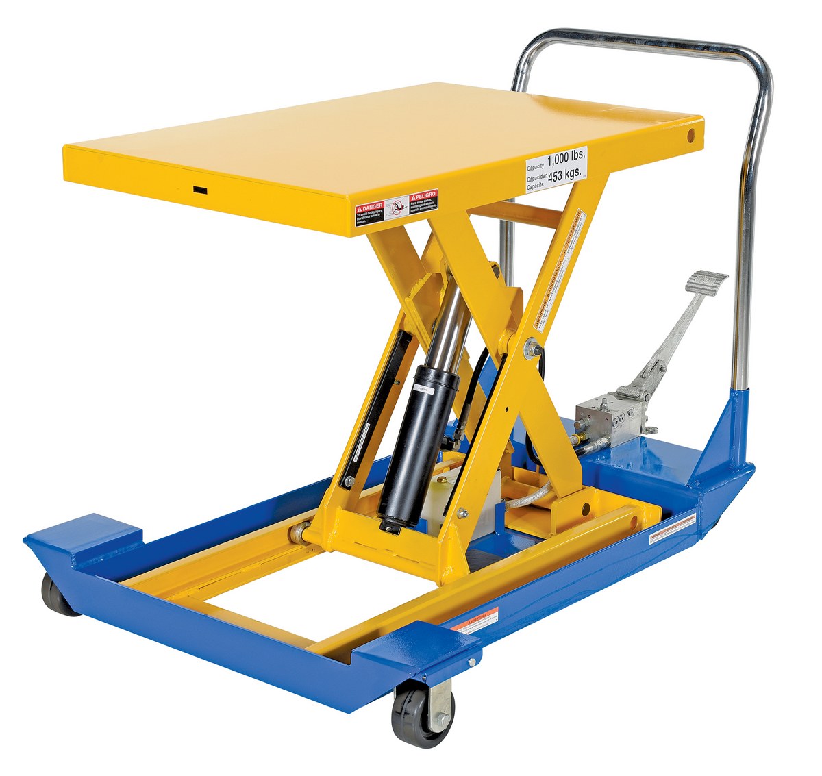 Steel Foot Pump Scissor Cart 36 In. x 24 In. 1000 Lb. Capacity Blue / Yellow
