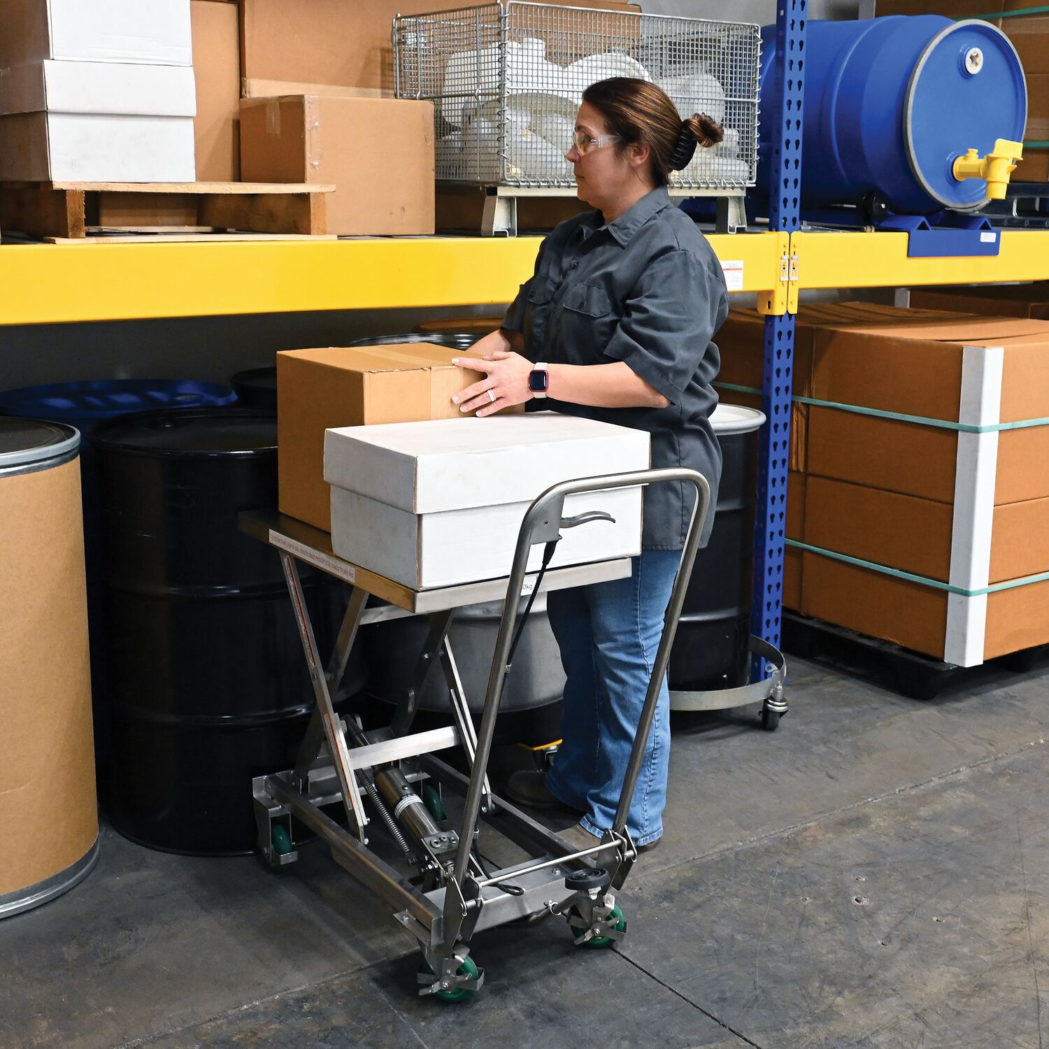 Our fully welded Stainless Steel carts are suitable for most food, medical and pharmaceutical industry settings. They are also suitable for wash-down applications. The quick manual raising and lowering lets the user adjust the height to their desired preference. While an open platform design makes for simple loading and unloading from all sides. Capacity is rated for 300 lbs.