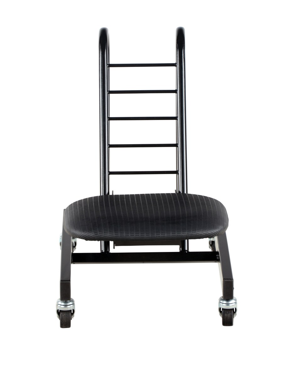 Steel Height Ergonomic Worker Chairs 9 In. to 18 In. 220 Lb. Capacity BlackThe Ergonomic worker seat allows individuals to go from a low crouch position to a standing position. The seat height can be adjusted by moving the seat and hooking in to the horizontal bars located on the chair frame. Portable on swivel casters. The unit has four rubber "shocks" under the seat base that allow the seat to tilt forward, left, and right so it can accommodate your body movements. The front tilted position of the seat helps the user maintain the natural posture position of the spine.
