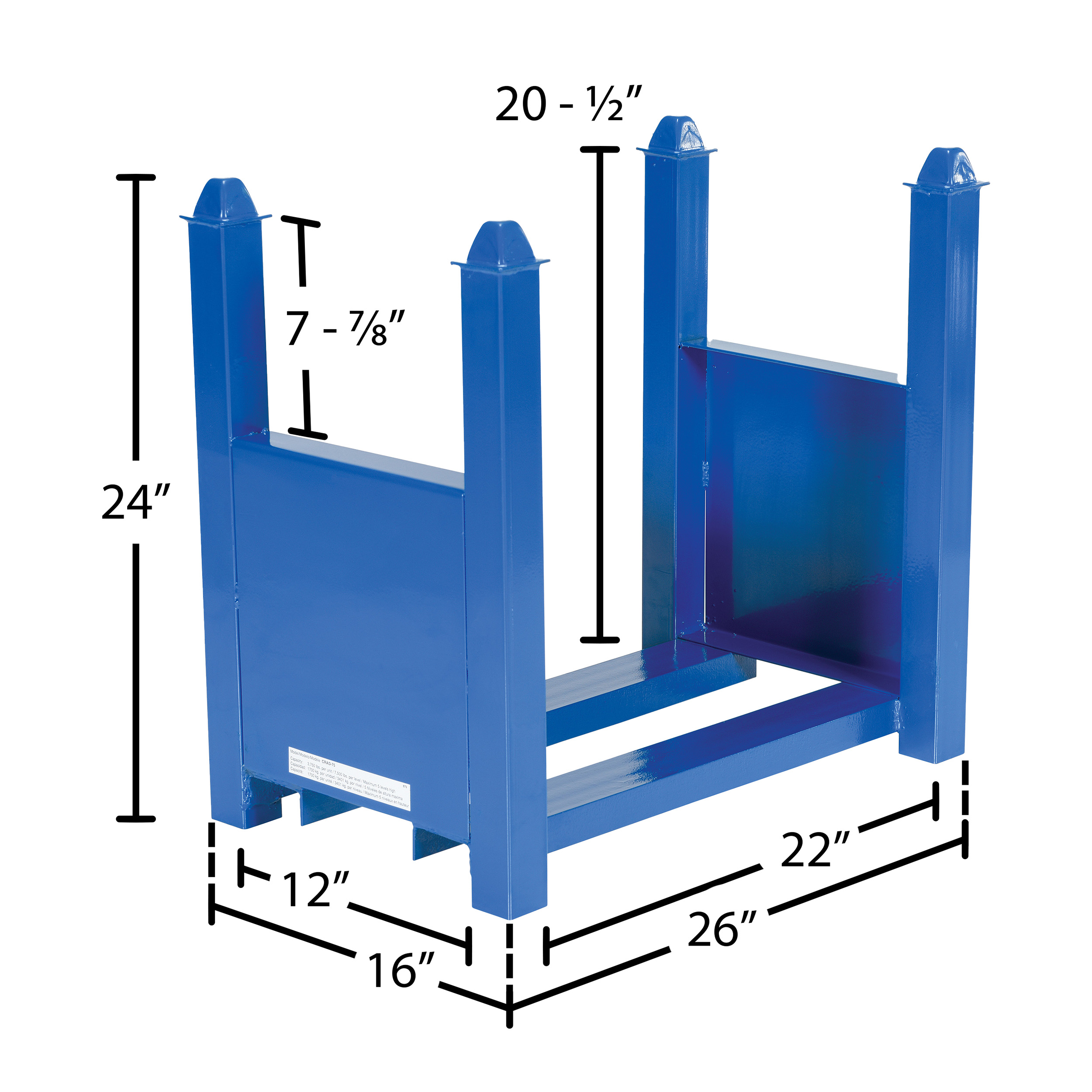 Steel Stackable Bar Cradle 26 In. 7500 Lb. Capacity BlueStackable bar cradle; a sturdy welded steel rack that is strong enough to handle heavy loads. Allows for custom design by choosing length, depth, and height of individual storage systems. Welded steel construction with blue painted surface.