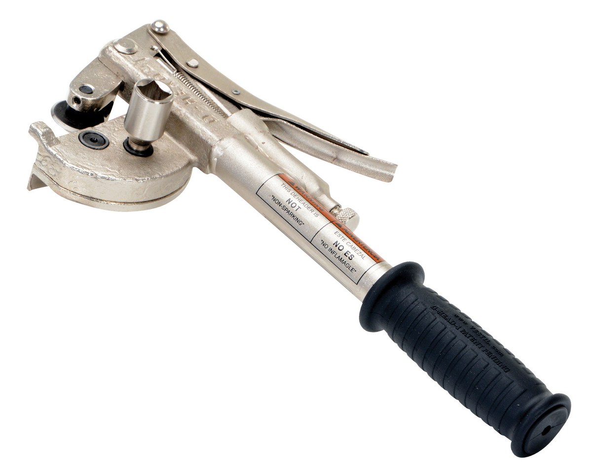 Steel Manual Drum Deheader Express Open 3 In. x 5-1/2 In. x 14 In. SilverQuickly remove the head of a steel drum with this express open manual drum Deheader! Includes vice-grip style mechanism for securely attaching unit to drum. Use only either a ½ inch manual ratchet wrench or electric drill to operate the Deheader ratchet. Do not use a pneumatic or electric impact wrench to operate the header ratchet. Warning: improper use of this drum header might result in personal injury or damage the header. Ratchet not included.