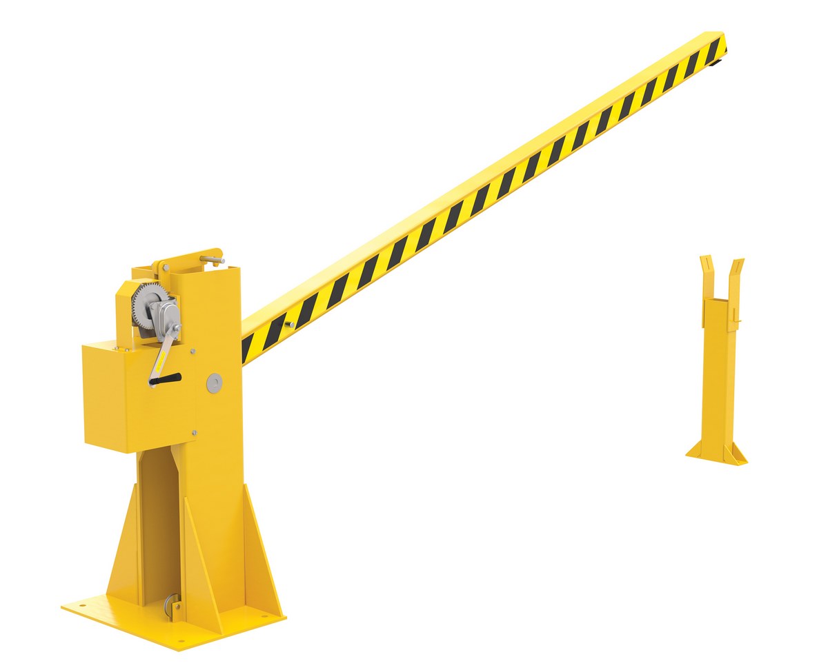 Steel Dock Barricade Manual Hand Crank 8 Ft. YellowThe dock barricade is an active barrier that represents the next generation of innovative loading dock safety systems. Installation is simple, anchor the unit to the floor. Includes a lock bar on the arm post to restrict rotation of the barricade arm, padlock not included.