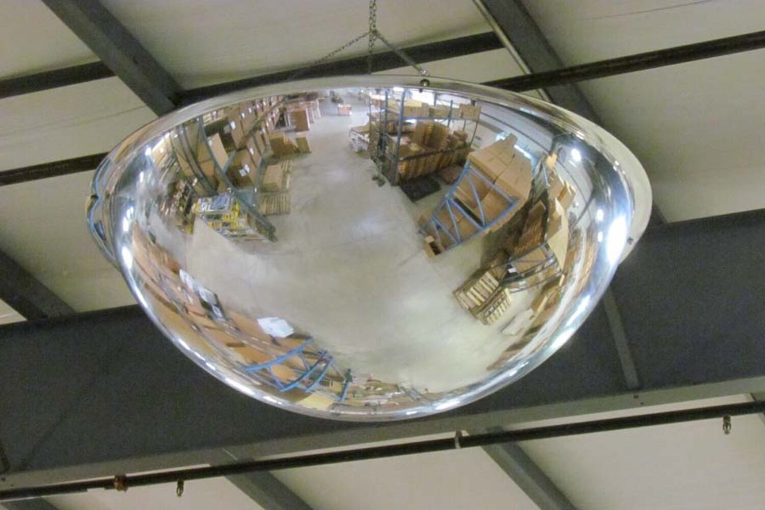 Acrylic Industrial Dome Mirror 34 In. Diameter 360 Degrees 36+ Ft. Viewing Distance Covered SilverThis convex mirror helps eliminate those danger areas found in most industrial settings. A lightweight design made from the finest quality materials and grade A optical acrylic. Mirror includes hardware for securing in the suggested pendulum-style hanging position.