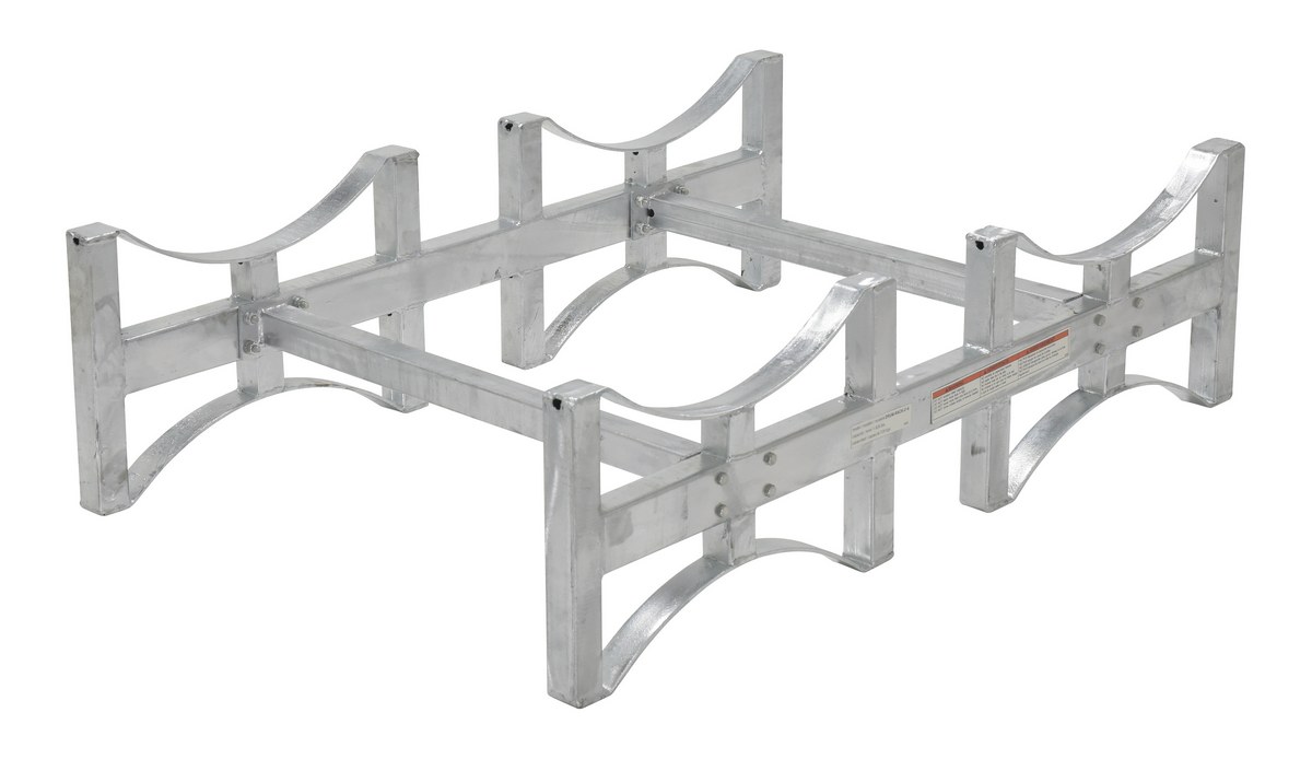 Galvanized Steel Stackable Drum Rack 2 Drum 55 Gallon 1600 Lb. Capacity GrayThis steel drum rack has four-way fork truck access. Not recommended for stacking more than four (4) racks high. All steel construction with formed steel cradles. Bolt together assembly with hardware included.
