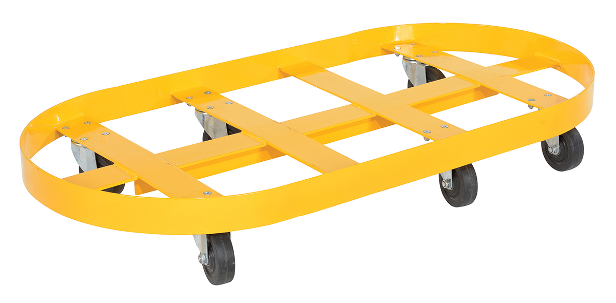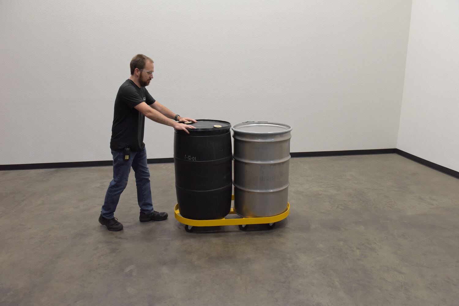 Steel Double Drum Dolly with Glass Filled Nylon Casters 45 In. x 45 In. x 39 In. Two 55 Gallon 2000 Lb. Capacity Yellow
