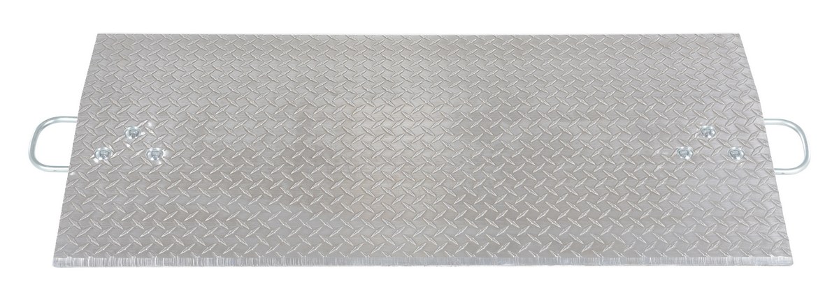 The aluminum economizer dock plate is an economical way to speed up truck loading and unloading. The unit spans the opening between dock and trailer to allow pallet or hand trucks along with traffic to safely move in and out of the trailer. The dock plate is constructed of high strength, non-skid aluminum alloy tread plate. The lightweight design with bolt on zinc plated legs and handles on each side makes portability easy. Locking legs for OSHA compliance. Not for use with fork trucks.
