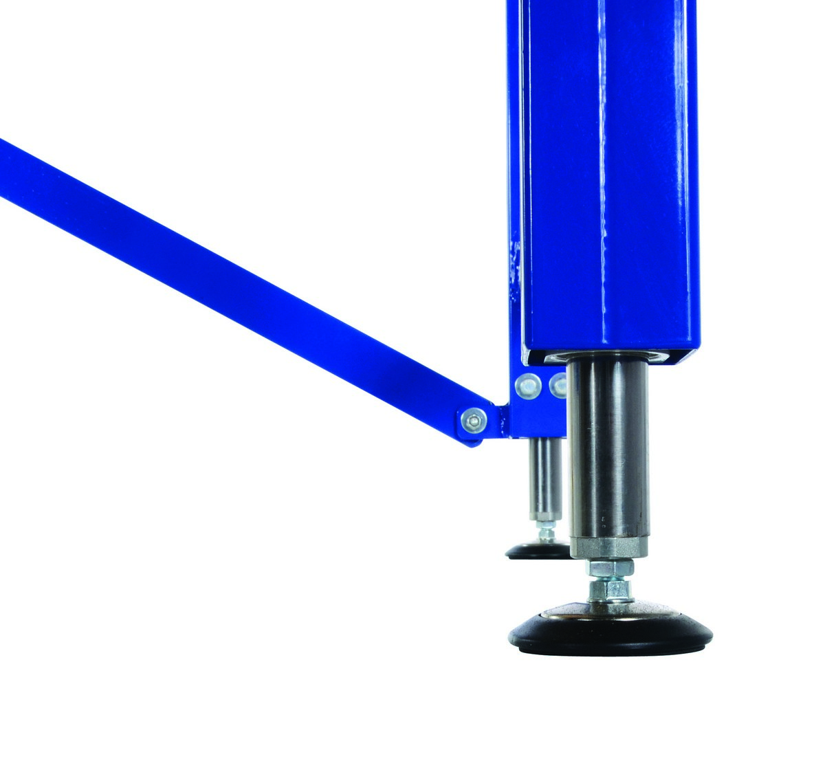 Steel/Wood Manual Adjustable Ergonomic Work Bench 60 In. x 30 In. 750 Lb. Capacity Blue/TanThe manual adjustable Ergonomic Work Bench raises material to an ergonomic working height. A fold away hand crank is located directly under the platform for easy raising and lowering. The hydraulic system will raise platform evenly.