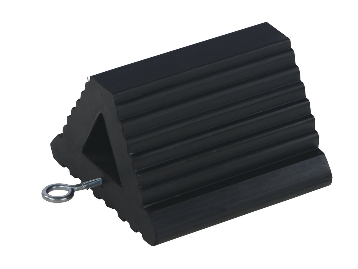 Extruded Rubber Wheel Chock 8-1/2 In. x 8-1/2 In. x 6 In. BlackThe rubber Wheel Chock is constructed of reinforced rubber to provide a sure grip on virtually any surface. The curved surface contours to fit tires. Rubber resists tearing, abrasion, ozone weathering, etc. The functional design is durable in all weather conditions.