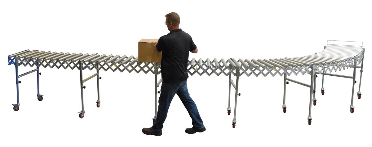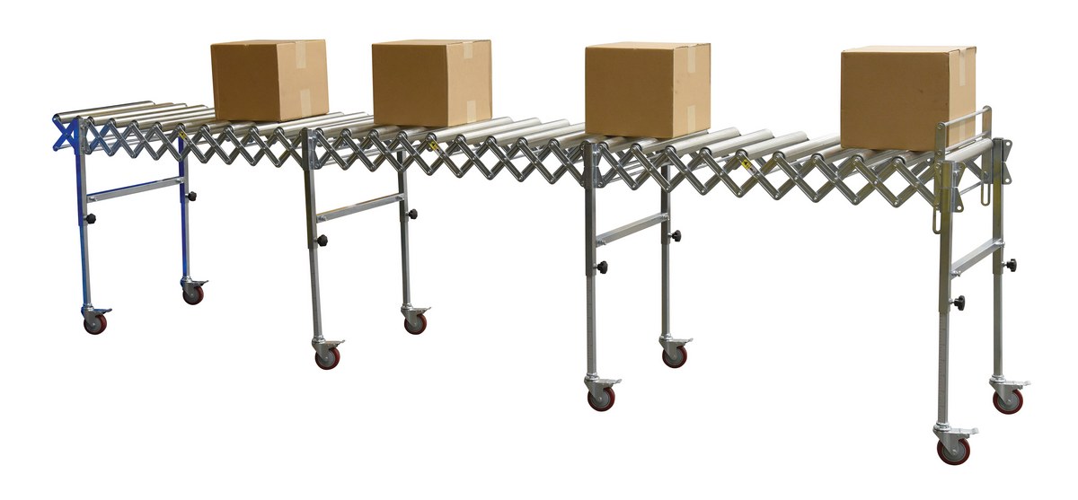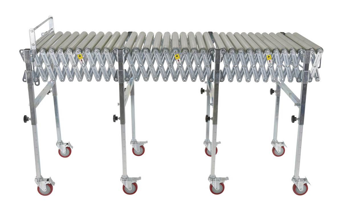 Steel Expandable Conveyor Roller 200 Lb. Capacity SilverExpandable roller conveyor is the perfect asset for packaging and distributing facilities. The conveyor provides the user an ergonomically friendly way to transfer goods while minimizing the bending and twisting during shipping and handling. A strong construction provides strength for transferring large awkward products. The conveyor can be expanded to reach greater distances between packaging points. Once finished it can be retracted to fit in a condensed area.