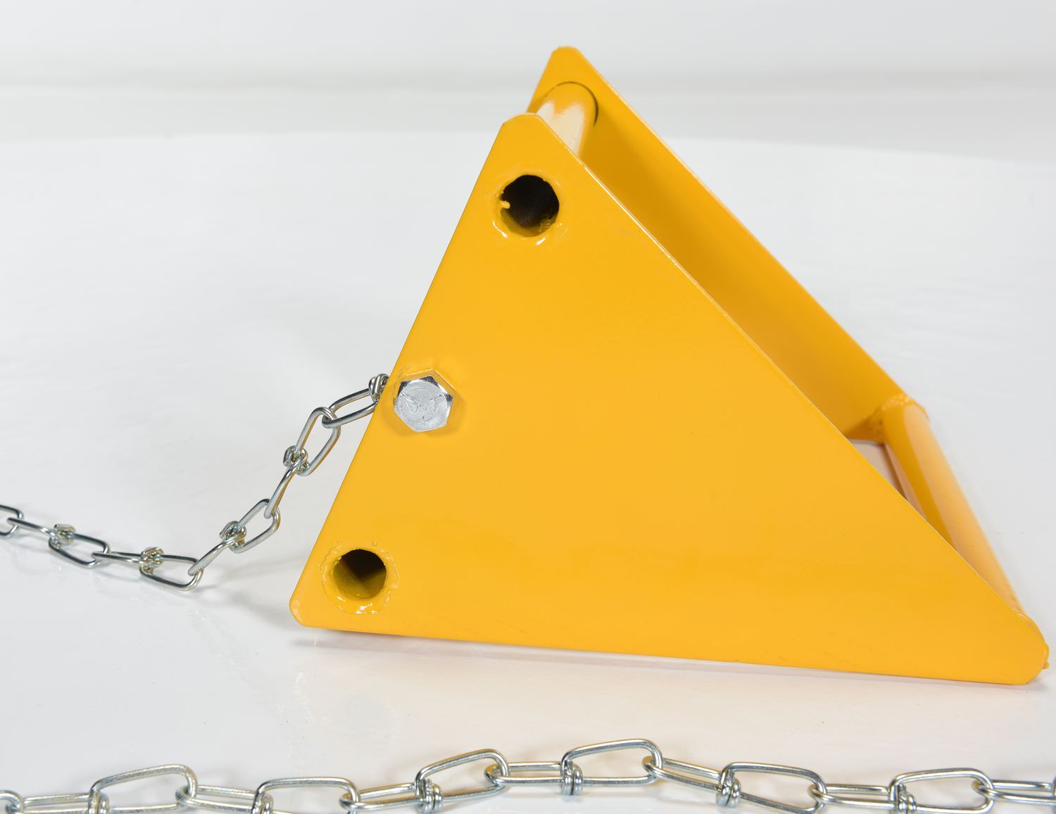 Fabricated Steel Wheel Chock With 10 Ft. Security Chain YellowThe formed steel wheel chock is perfect for on the go or at the shop. The unique design provides control for the user to securely stabilize the object at hand. The minimal weight of the chock lends itself to simple transference and maneuverability. The compact nature of the unit is great for storage when not in use.