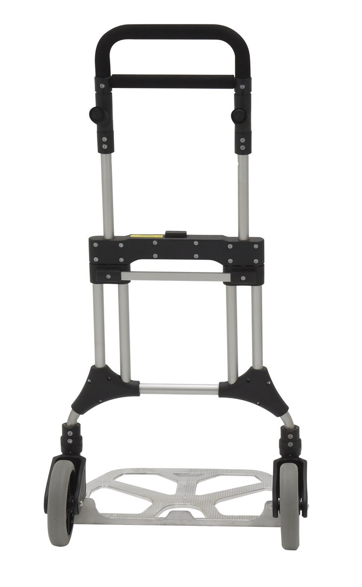Designed for everyday, all purpose use. The handle and wheels fold up quickly and easily allowing you to store it in tight spaces such as trunks of cars, under tables, or in closets.