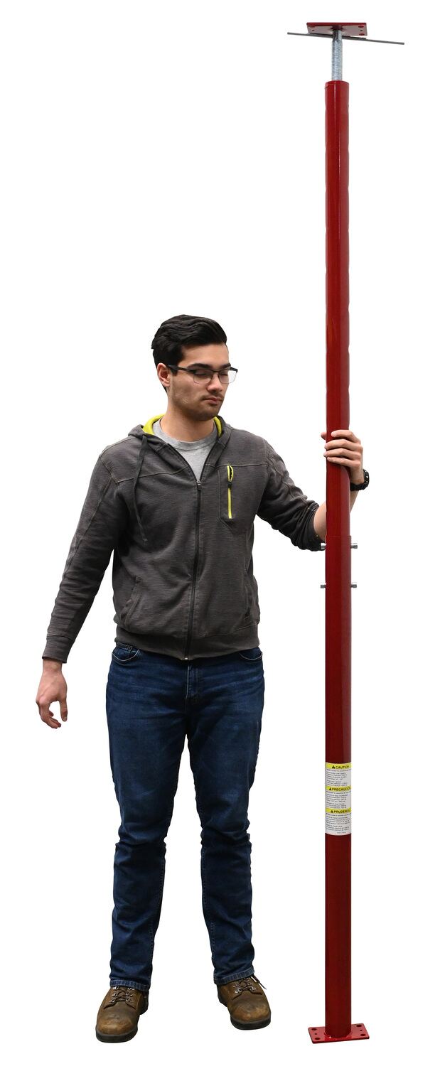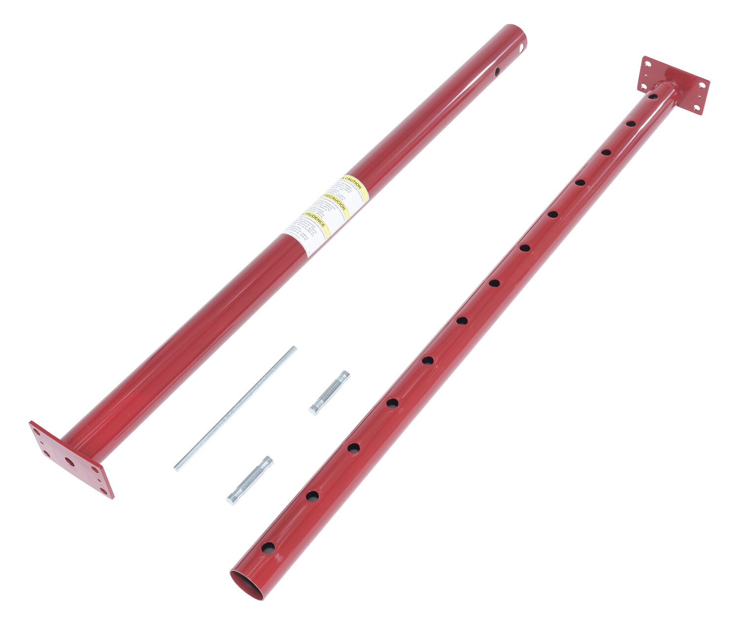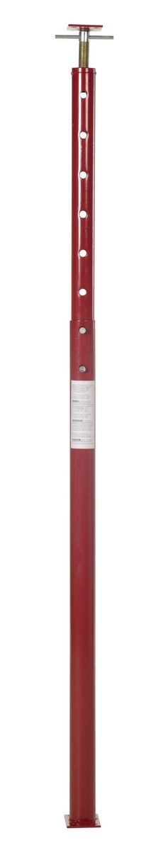 This basement floor jack provides extra support for leveling and stabilizing floor beams and joists during construction and repairs. Telescopic style with removable pins lets you properly position the brace for better leveling. Includes locking pins and turning bar for easy height adjustment. Rugged all welded steel construction. Red oxide finish.