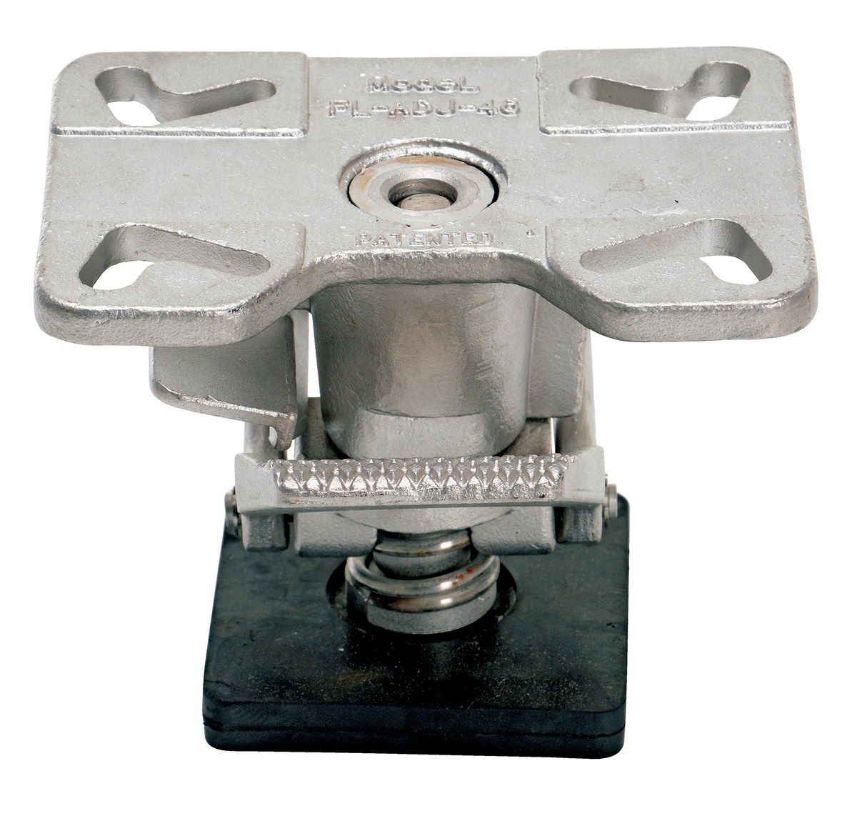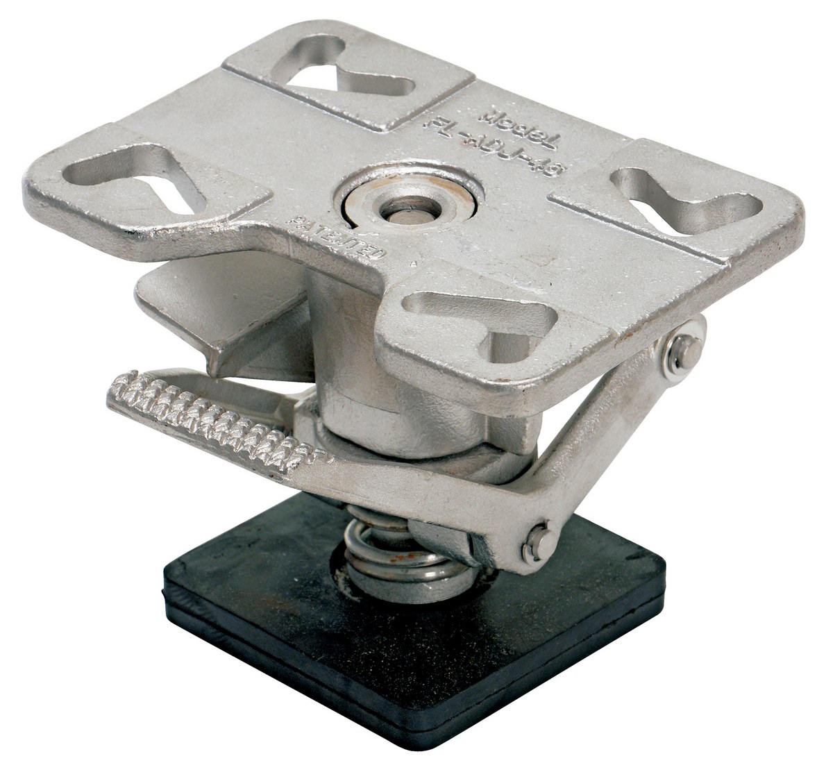 Stainless Steel Adjustable Floor Lock 6-1/4 to 8 In. Height SilverThis one of a kind adjustable height Floor Lock includes an adjustable height foot pad that will work on carts with different caster heights. The adjustable height feature provides uniform locking and safety unlocking force for better ergonomic operation. This feature also keeps the floor lock working properly as spring and pads wear over time. Height is adjustable by turning the bottom pad. The bottom pad includes suction-cups for extra grip.