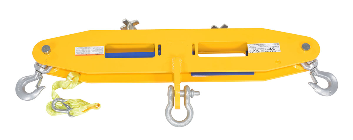 Steel Forklift Lifting Beam 40 In. x 4-1/2 In. x 18-11/16 In. 10,000 Lb. Capacity YellowA forklift lifting beam is the perfect asset for maneuvering and transferring heavy objects. The centrally located shackle between two fork pockets allow the user to safely attach to the unit and transport to the desired location. Hooks are also attached to the outside of the unit for a more secure lifting experience. The strong steel construction with a bright finish enables high visibility from both near and far. Secure to the fork truck by means of a long safety restraint and screw clamps.