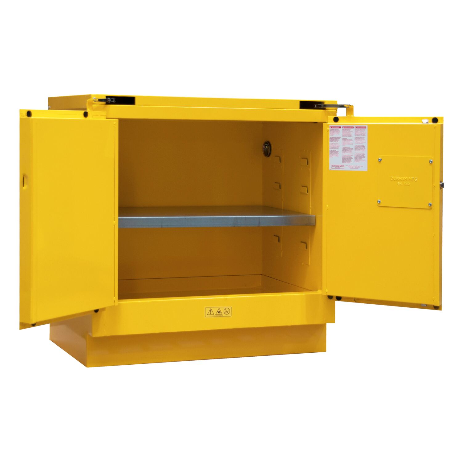 Flammable Self Closing Under Counter Storage Cabinet 22 Gallon Capacity YellowKeeping dangerous items safe is always a priority. Built to help with that safety is the flammable storage cabinet. A fully welded, double wall steel construction has the durability and strength that many standard cabinets just don't have. One of the best examples of the tremendous care that goes into each and every cabinet is the grounding aid. Each cabinet is equipped with an electrical ground to eliminate any electrostatic discharge. Another often over looked feature is the two inch leak proof base. This base neatly corrals any material or substances that may have escaped their original containers. Each cabinet comes assembled and prepared to keep you and your workplace safe!
