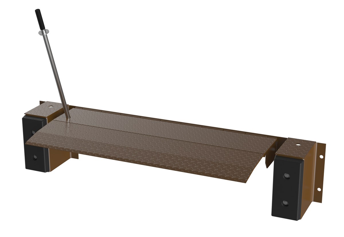Steel Mechanical Edge-O-Dock Leveler 66 In. Ramp Width 20,000 Lb. Capacity BrownThe Edge-O-Dock leveler permanently attaches to face of dock. It is recommended for docks to be at least forty-eight (48) inches high. When the trailer departs, the lip drops automatically behind the face of the bumpers. It comes complete with bumpers and installation instructions. Standard ramping is twenty-nine (29) inches. A steel dock edge, or approach ramp is required for proper installation. The mechanical Edge-O-Dock is operated by placing the actuation handle into the pocket of the inner lip and pulling down toward the floor. The operator then pushes the handle forward until the lip rests on the truck bed. As the trailer departs, the lip retracts behind the bumper face automatically.