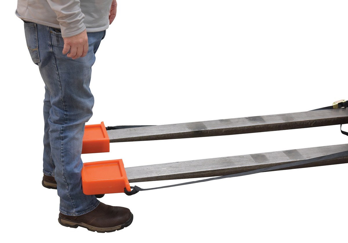 Thick Polyurethane Fork Tip Protector 5-5/8 In. x 3/4 In. Fork Pocket OrangeThe fork tip protector is a quick and easy way to make forks safer in a variety of work environments. A durable construction is lightweight and compact for simple storage when not in use. The included nylon strap allows the user to secure the protector in place, for limited jostling during movement. Units are available in a thick and thin outer shell design. Fork tip protectors are sold in pairs.