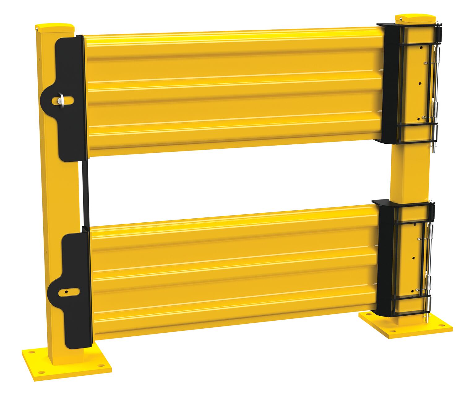 Steel 3 Ribbed Guard Rail Spring Gate 41.875 In. Length YellowA guard rail gate is an excellent addition to the guard rail structure. The gate provides the user with access to behind the rail, while still maintaining safety for the surrounding objects. A 3-ribbed steel design adds strength and durability to the gate in case of possible impacts. Gate is safely secured to the rail by connecting brackets. Powder coat finish for baked in added toughness.