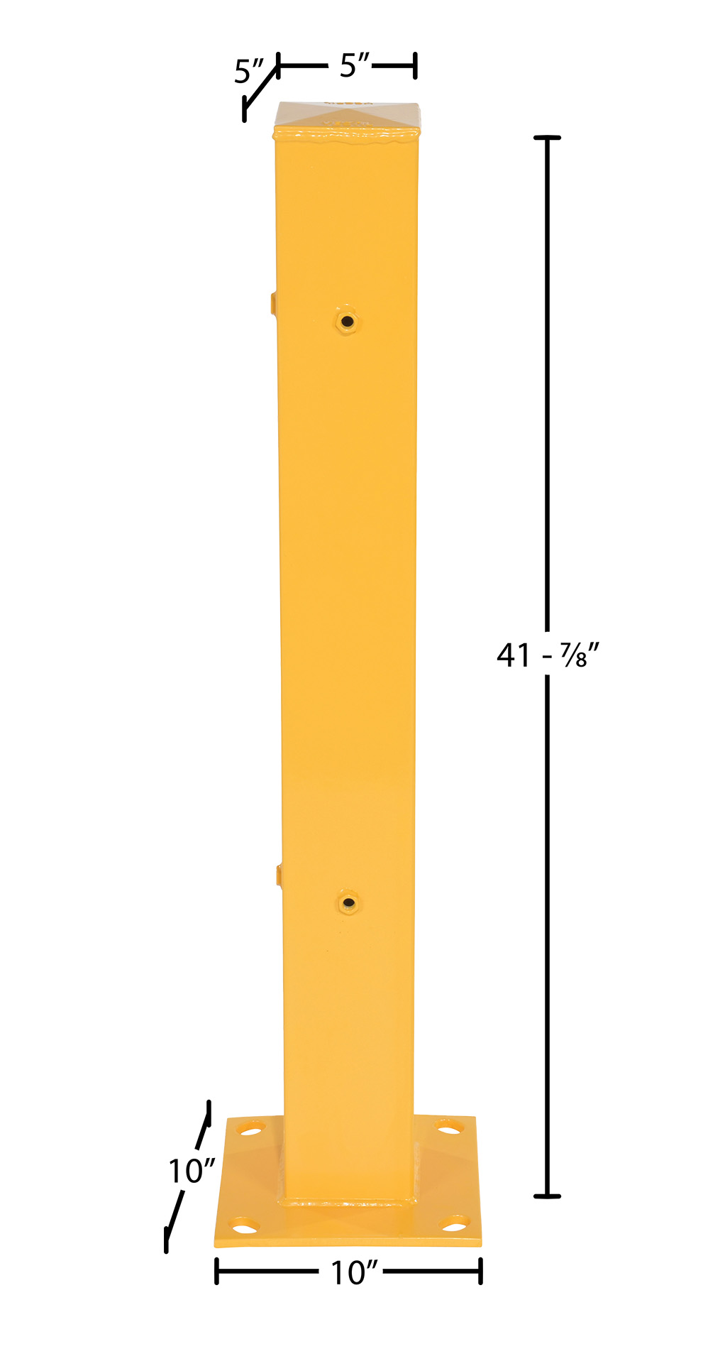 The Tubular post is an addition to the guard rail system. The post is designed with a steel construction for the utmost support strength. The yellow finish allows the post to be both visible and weather resistant. Includes mounting holes on three sides for use as a corner or center post. Posts come with rail mounting hardware. Floor mounting hardware is sold separately.