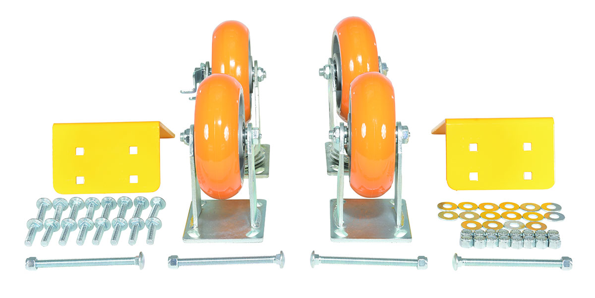 Elastic Polyurethane Caster Kit 6 In. x 2 In. 5,000 Lb. Capacity ButterscotchConstructed of high-grade elastic Polyurethane and coupled with 6203 premium precision ball bearings for added strength and durability. The upgraded tread provides A longer life, reduces the force required for movement and offers exceptional floor preservation. Orange tread color. 85 Shore A. high grade design. Made In Taiwan.