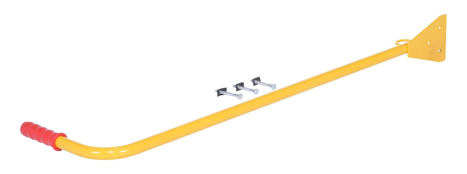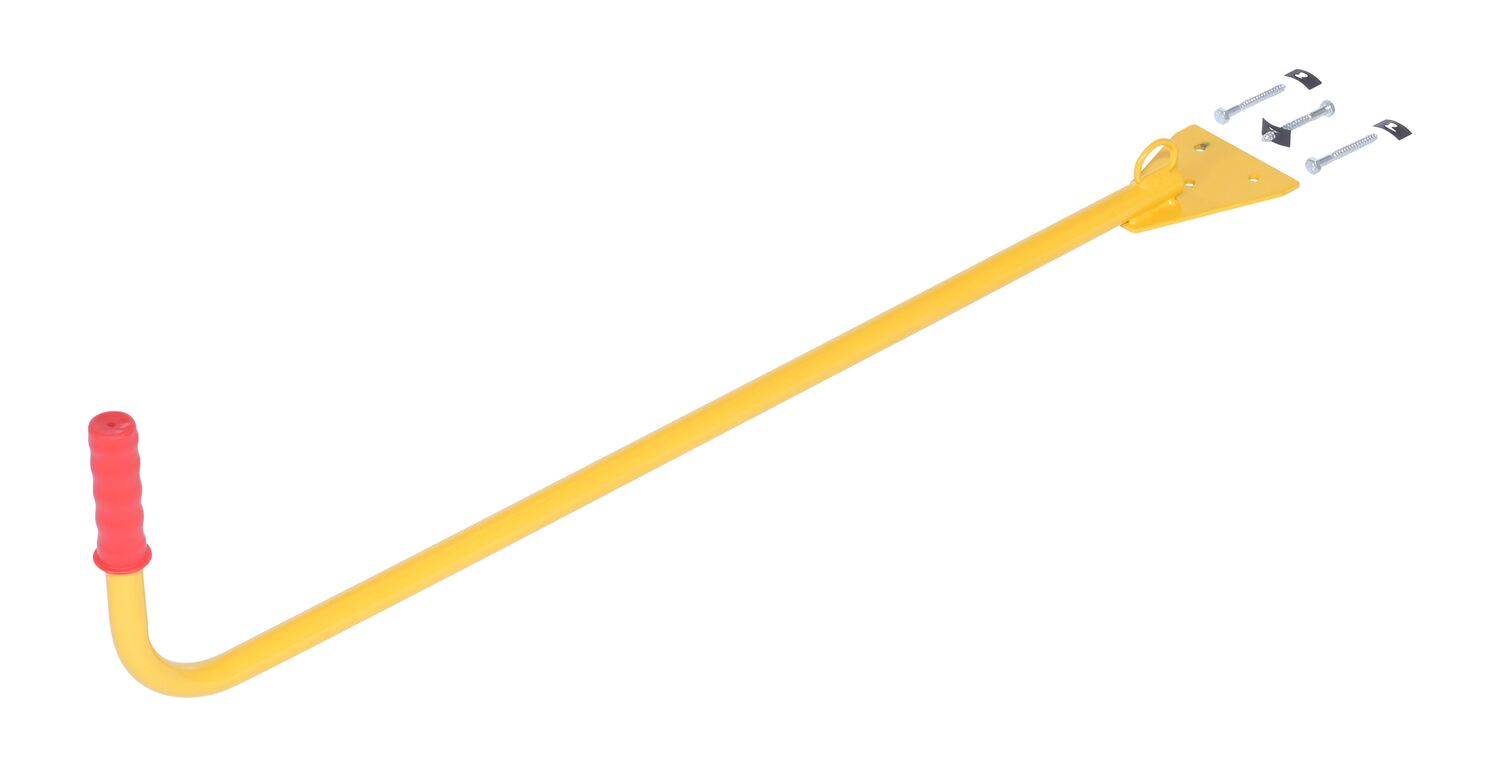 Steel Ergonomic Wheel Chock Handle YellowThis optional Wheel Chock ergo handle provides an ergonomic style handle that prevents bending to pull wheel chock from tire. D-ring provided for attaching security chain (chain not included).
