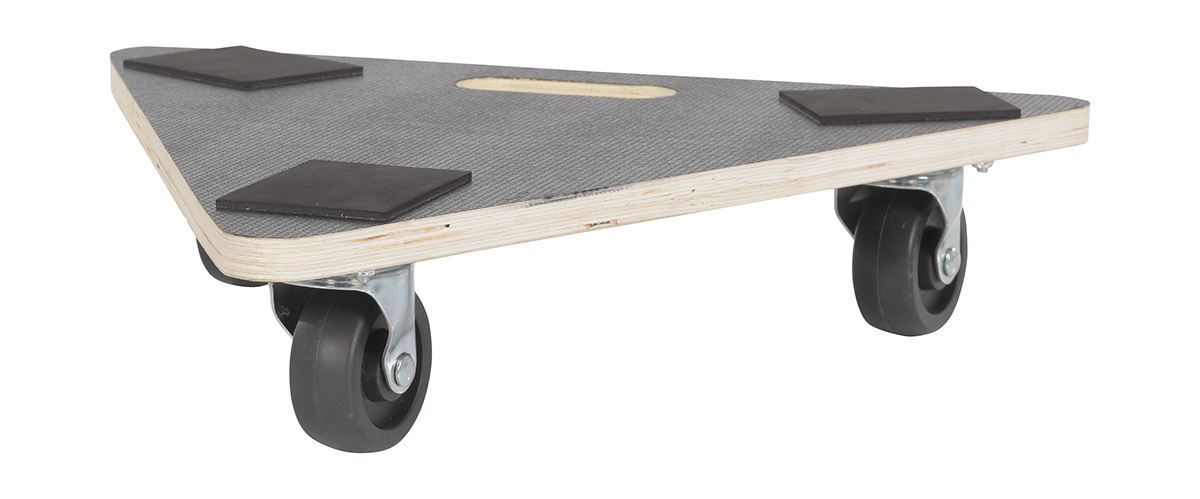 Hardwood Triangle Dolly Deck 16-1/2 In. x 18-1/2 In. x 4 In. 300 Lb. Capacity BlackThe Hardwood dolly is ideal for the distributing and shipping facilities. The unit is designed to transports boxes, crates, or supplies from workstation to workstation. The dolly can be modified by placing a pull strap for ergonomically friendly use.